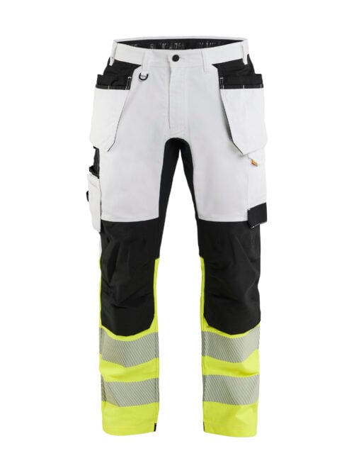Bequeme und leichte Handwerkerhose aus 2-Wege-Stretch mit Einsätzen aus 4-Wege-Stretch an den Stellen, wo maximale Bewegungsfreiheit benötigt wird. Der ToolRig™ Gürtel verläuft 360° um die Taille, sodass Taschen und Zubehör frei bewegt werden können. Dieses Modell wird ohne Taschen geliefert. Du kannst ToolRig™ Werkzeugtaschen und ToolRig™ Schieber hinzufügen, um deinen eigenen Werkzeuggürtel zusammenzustellen. Für das Arbeiten im Knien gibt es Kniepolstertaschen aus verstärktem CORDURA®-Stretch, die sowohl Schutz als auch Bewegungsfreiheit garantieren. Vorgeformte Knie sorgen für mehr Beweglichkeit und Komfort bei knienden Arbeiten. Reflektierende Details an den Beinen verbessern die Sichtbarkeit bei schlechten Lichtverhältnissen. 2-Wege-Stretch kombiniert mit Einsätzen aus 4-Wege-Stretch ToolRig™ Gürtel 360° um die Taille – Taschen und Zubehör frei beweglich Hinzufügen von ToolRig™ Werkzeugtaschen und ToolRig™ Schiebern ganz nach Bedarf Schlaufen für ToolRig™ Träger/Geschirr für bessere Ergonomie und Lastverteilung Kniepolstertaschen aus verstärktem CORDURA®-Stretch Vorgeformte Knie für bessere Beweglichkeit und mehr Komfort bei knienden Arbeiten Schwarze reflektierende Details an der Beinrückseite