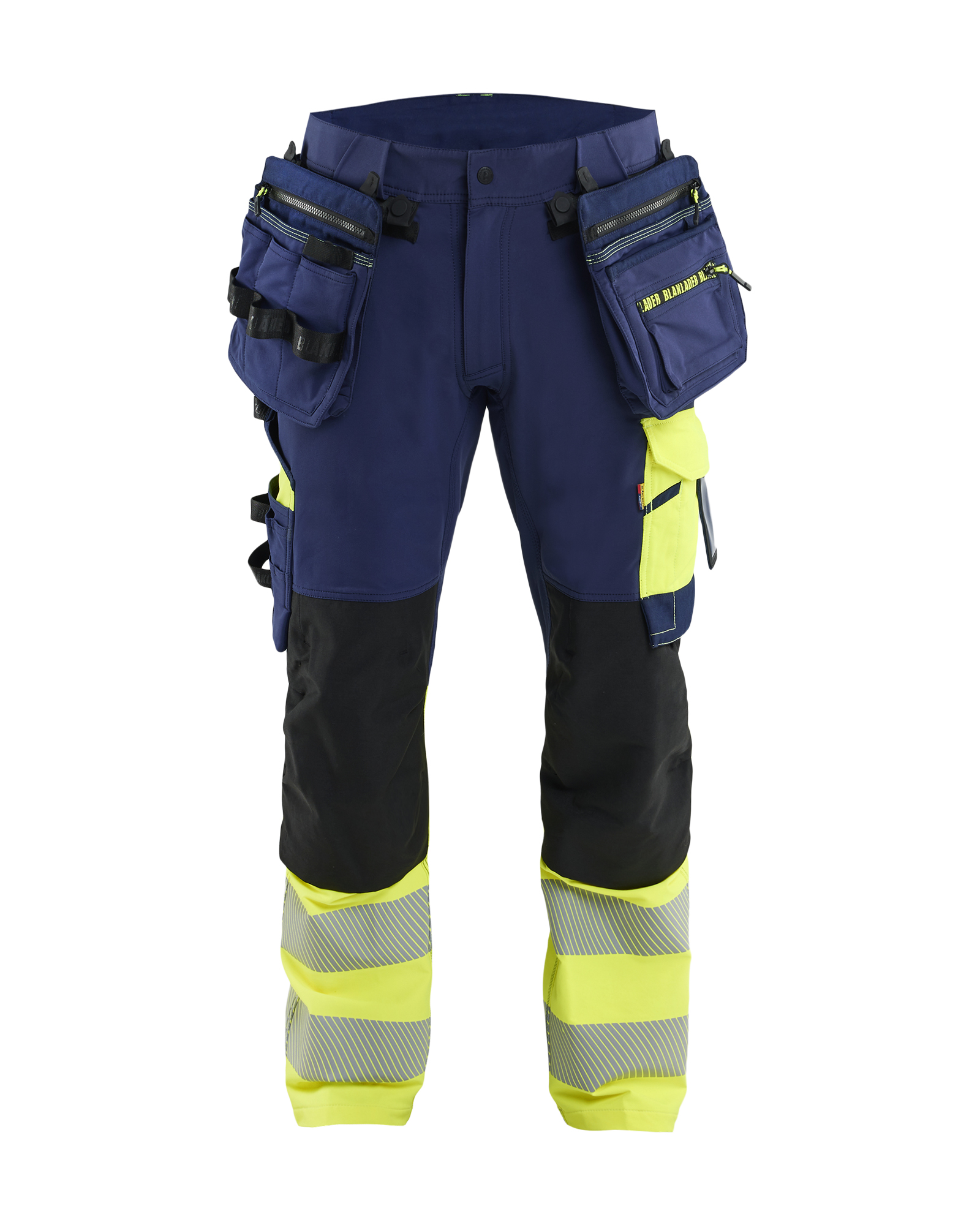 Für schnelles Arbeiten und hohe Sichtbarkeit. Das Hauptmaterial ist ein bequemes, flexibles und robustes 4-Wege-Stretchmaterial, das ganztägigen Komfort bietet, während atmungsaktive Mesh-Einsätze an den Knien und an der Passe auch bei anstrengenden Arbeiten für die richtige Körpertemperatur sorgen. Der ToolRig™ Gürtel verläuft 360° um die Taille, sodass Taschen und Zubehör frei bewegt werden können. ToolRig™ Werkzeugtaschen und ein Hammerhalter sind enthalten und abnehmbar. Das ist ideal, um zwischen verschiedenen Aufgaben zu wechseln. Um schwerere Ausrüstungen befestigen zu können, besitzt die Hose Schlaufen für ToolRig™ Träger/Geschirre für eine bessere Ergonomie und Lastverteilung. Kniepolstertaschen aus verstärktem CORDURA®-Stretch ermöglichen ein bequemes und sicheres Arbeiten im Knien. Die extrabreiten Werkzeugtaschen bieten grosszügigen Stauraum, CORDURA®-Verstärkungen schützen die am stärksten beanspruchten Stellen und die erhöhte Taille am Rücken sorgt dafür, dass du auch in Bewegung immer gut geschützt bist. Das segmentierte Reflexband stellt sicher, dass du gesehen wirst, wenn es wirklich darauf ankommt. Bequemer, flexibler und robuster 4-Wege-Stretch Atmungsaktive Mesh-Einsätze an Knien und Passe ToolRig™ Gürtel 360° um die Taille – Taschen und Zubehör frei beweglich ToolRig™ Werkzeugtaschen und Hammerhalter inklusive. Schlaufen für ToolRig™ Hosenträger/Geschirr für bessere Ergonomie und Lastverteilung Kniepolstertaschen aus verstärktem CORDURA®-Stretch Erhöhte Taille am Rücken Mit CORDURA®-verstärkte Werkzeugtaschen Segmentiertes Reflexband