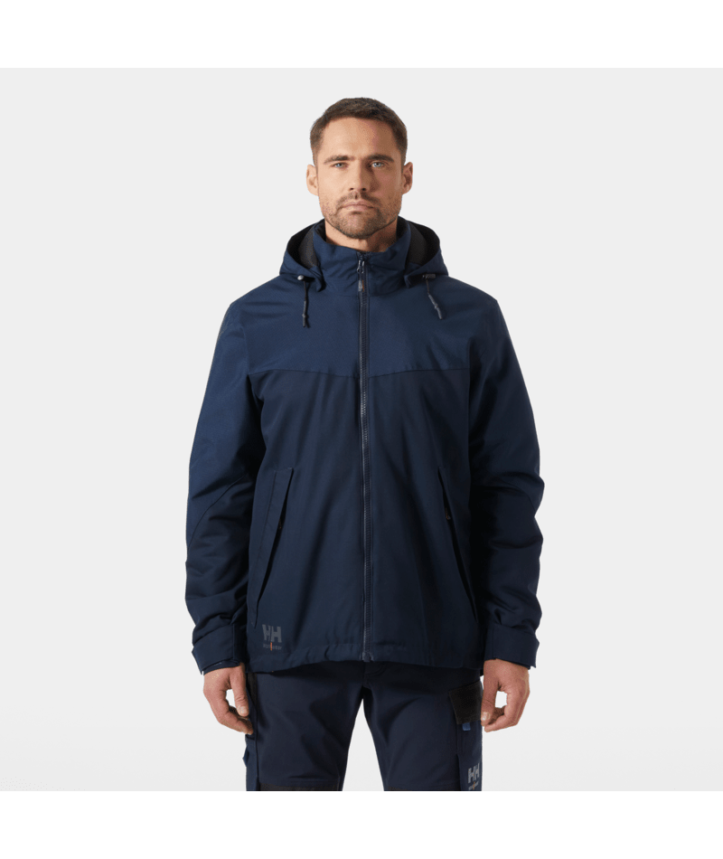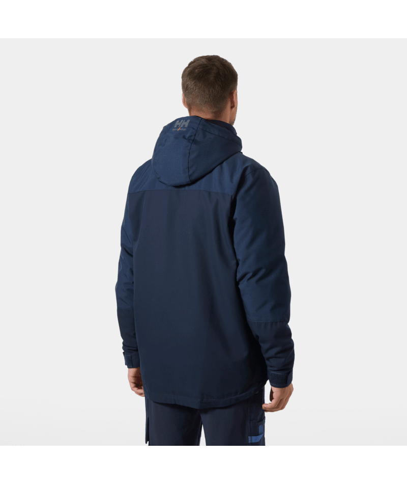 Diese Helly Hansen Winter-Arbeitsjacke ist genauso zuverlässig und strapazierfähig wie Sie selbst. Ausgestattet mit hochwertigen Details wie YKK®-Reissverschlüssen vorne und an den Taschen lässt sich die Oxford Winter Jacket an Saum, Ärmelbündchen und Kapuze perfekt an Ihre Passform anpassen. Die Kombination aus Helly Tech® Performance-Membran und Primaloft®-Isolierung hält Sie bei Regen und Schnee warm, trocken und komfortabel. Ein verlängerter Rücken und vorgeformte Ärmel bieten optimale Bewegungsfreiheit. Der stark beanspruchte Schulterbereich ist nahtfrei, um die Haltbarkeit zu verbessern und den Tragekomfort beim Tragen von Ausrüstung zu erhöhen. Durch vollständiges Öffnen des Frontreissverschlusses lässt sich der Kinnschutz verlängern. Der Kragen ist mit gebürstetem Polyester gefüttert, um den Komfort zu bieten, den Sie von einer Winter-Arbeitsjacke erwarten.