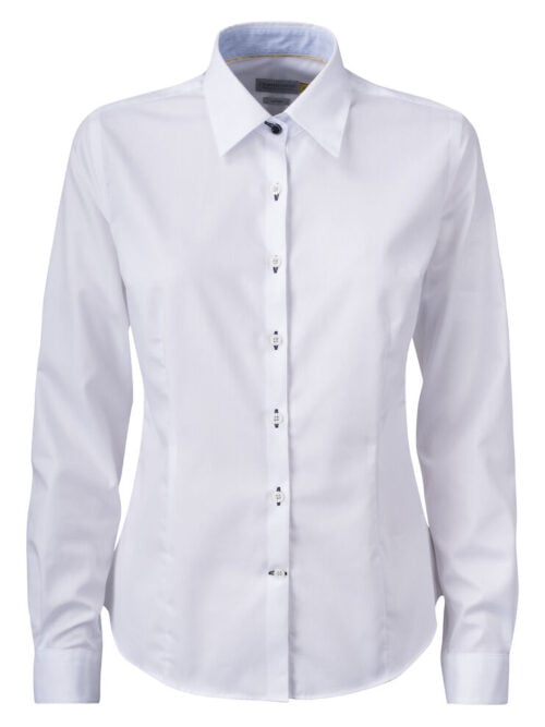 • Moderner, abgeschnittener Kragen mit verdeckter Knopfleiste