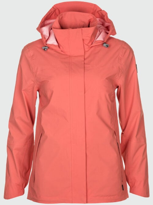 Chana. Dieser etwas längere Regenmantel besticht durch sein leichtes Design und den verlängerten Schnitt am Rücken. Er ist zu 100 % wetterfest.